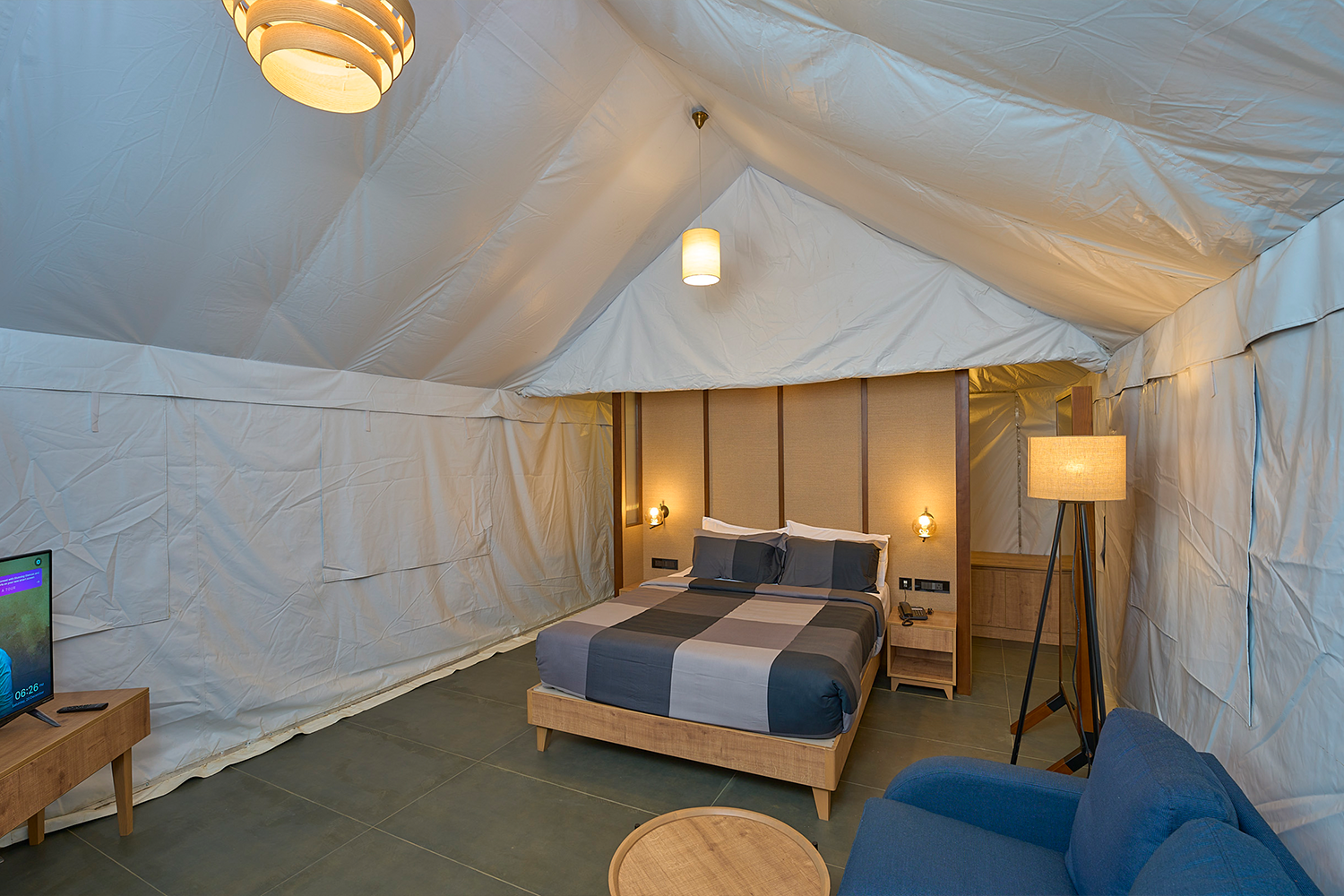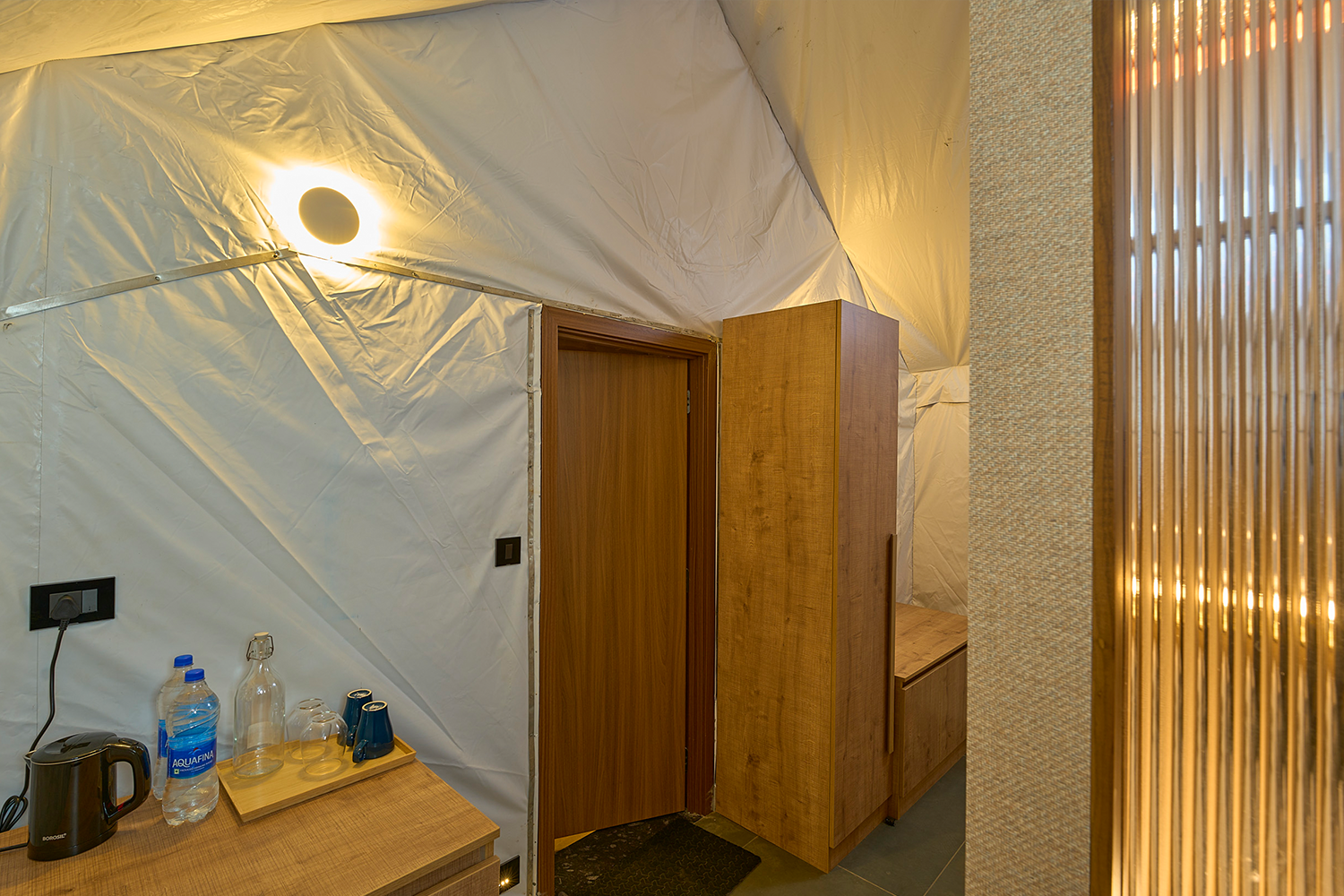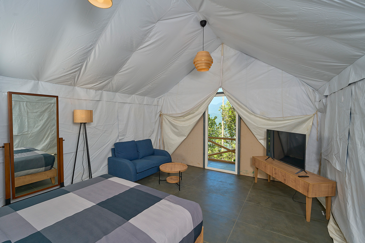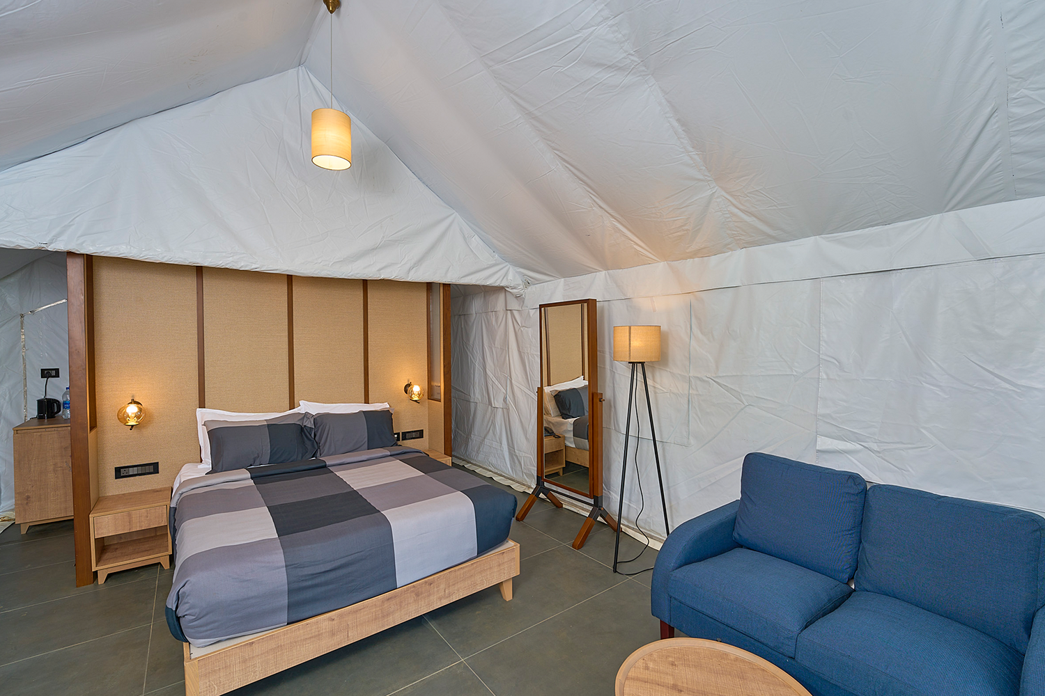 Canvas, wood, and quiet refinement. A nod to old-world safari luxury, reinterpreted for the hills.